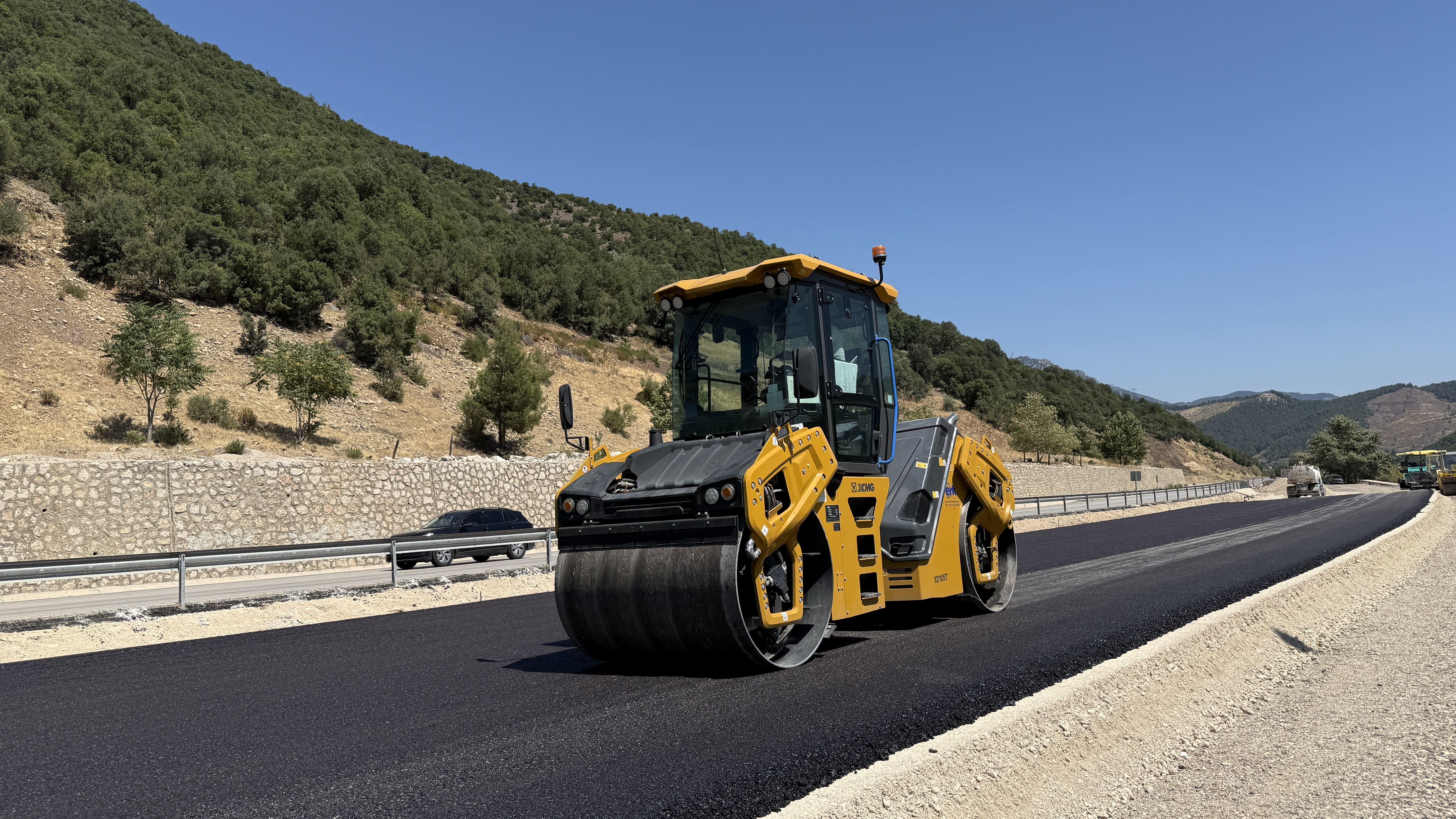 2. Asfalt silindiri ile yüzey düzgünlüğü sağlanır.